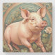 PIGLET. Beautiful farmhouse coaster featuring a piglet on floral background. Vintage Art Nouveau Inspired look. Generative Art design.