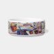 This is a heavy, durable bowl decorated with Tibbies of many colors, the perfect size for hungry/thirsty Tibs. The design is interesting and printing clear.