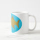 This design is a pike fish. The fish is green and on a blue background. This pike fish design looks great on this Mug