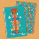 Teal spiral notebook with a pile of books tied up with a big red bow . Personalize it with a name . The paper is set for handwriting practice , but you can choose any type among the 10 choices available to you .