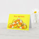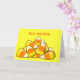 This colorful Halloween design has a pile of candy corn, the triangle-shaped orange, yellow and white Halloween candy.