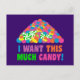 This funny halloween design says "I Want This Much Candy!" and features a giant pile of orange and yellow candy corn, bright and colorful gum balls and swirly green mint candies! This adorable trick or treating artwork is fun and filled with halloween humor! Trick or treat!