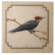 Detailed painting of a Pileated Woodpecker sitting on a tree branch, accented by a matching tan patterned background.