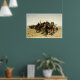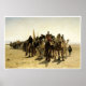 This painting is of pilgrims on their travels to Mecca. Ther are poeple on camels and some waking. Some carry flags as they travel through the desert.