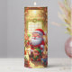 The Christmas tree and Santa, along with his elves, seem to glow as the candle burns down.