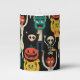 It's halloween party design celebrating the upcoming Halloween. This hand-drawn kawaii and fun illustration features halloween characters, vampire, pumpkin, Frankenstein, grim reaper, werewolf, skeleton, ghost and pumpkin.