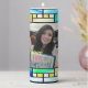 Stained Glass effect Photo Frame in soft colorful pastels for your favorite photo. Custom quality pillar candle ready for your picture and message. Beautiful frame with watercolors of blue, green, yellow and white. Encouraging words of "Hope, Love & Happiness can be personalized. Perfect for every occasion.