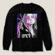 The design features a stylized black and white photo of a woman in a power pose, layered over a monochrome portrait with the Roman numerals MMXX (2020) covering her mouth, symbolizing a time of silent reflection or being silenced. The entire piece is energized by vibrant neon pink and blue abstract strokes and grunge/halftone effects, giving it a distinct Cyberpunk, Y2K, and Pop Art aesthetic. It’s a powerful, fashion-forward statement piece perfect for fans of edgy streetwear and modern digital collage art.
