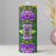 Pillar Candle with lovely bejeweled flowers visited by reflecting hummingbirds