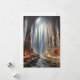Tall stone pillars support an earthen ceiling over an underground community of people inhabiting a huge cavern, with a river, walkways and source of energy.