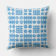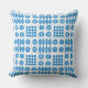 An attractive Throw Pillow or Cushion with a pattern of traditional Welsh Tapestry motifs in Bright Blue on a White background.This pattern will fit all sizes and shapes of pillows.