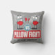 Hilarious spoof has a throw cushion VS a soft pillow duking it out with boxing gloves and says Pillow Fight! Lightweight Championship in retro red, white, blue and gray colors.