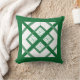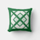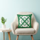 Shamrock outlines decorate the four inner squares of a pattern with a stained glass look. Intersecting squares in three shades of background color (defaults to dark green), form a lattice effect.
