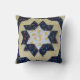 Quilt pattern in yellow, white and dark blue "Star flower" . The central "star" is a white with dark yellow ducks. This is surrounded by "petals" of dark blue with red, blue and yellow flowers. A second petal row is yellow and white gingham check, followed by the blue pattern again, with the corners in the yellow gingham.