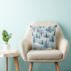 A pillow with a snowy winter background. White snow and trees are depicted.