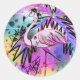 Pimped up flamingo with bandana, tattoos and bling. Graffiti background palm trees, a fun sticker for parties, hen nights or stag dos.