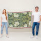 A floral throw blanket with a pattern by William Morris (1834-1896), titled Pimpernel (1876). White poppies with swirling green foliage and yellow pimpernel flowers. He was a British artist best known for his influence on the Arts and Crafts movement and his wallpaper design.