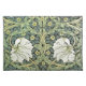 A cloth placemat with the floral pattern by William Morris (1834-1896), Pimpernel (1876). The Arts and Crafts design consists of large white flowers twisting among pimpernel plants with yellow flowers, and green leaves.