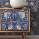 Set Item 4 of 12 Tiles - Embrace the timeless beauty of the Arts and Crafts Movement with this elegant set of 12 unique ceramic tiles, showcasing the famous Pimpernel Pattern by William Morris. Cast in calming shades of Warm White and Dusty Blue, these tiles reflect the iconic design ethos of simplicity, nature-inspired motifs, and hand-crafted quality. Turn 12 tiles into an infinite pattern! Expand seamlessly with the Pimpernel Pattern by William Morris to adorn any wall size.