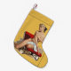 Perfect! Exactly what I ordered! I uploaded a picture of my blue chow, and the screen print was incredible. the back side of the stocking was the red and black checkered print. my puppy's name was also printed on the cuff of the stocking. PERFECT! Highly recommend this product! My puppy's name was screen printed onto the cuff of the stocking, the font was perfect!