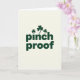 This design shows a light cream background with the phrase “pinch proof” centered in dark emerald green, giving it a calm, festive look 💚. The words are set on two lines, with “pinch” above “proof,” creating a neat, balanced focal point that feels easy on the eyes. The thick, simple lettering has a friendly confidence, like an inside joke shared between close friends at a St. Patrick’s Day get-together ☘️. A large shamrock takes the place of the dot over the “i” in “pinch,” adding a sweet, flirty wink to the message. Two smaller shamrocks sit near the upper right of the “h,” like little accents that lean toward each other the way a couple might in a photo. The deep green against the pale background keeps the text clear and gives the layout a crisp contrast. The shamrocks are the only extra graphics, so your attention stays on the centered words and their clever details. The largest shamrock sits directly above the “i,” while the two smaller ones hover just over the “h” on the top line.