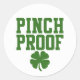 Pinch Proof with St Patricks Day shamrock Classic Round Sticker