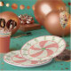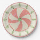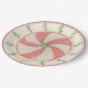 These paper plates feature a delightful original design that starts w/a wreath of zig-zagging Christmas trees surrounding a central medallion of a classic pinwheel style peppermint candy. It has a 1940-1950s retro feel due to faded shades of red and green & 'grunged' effect.