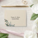 This Pine Blue Winter wedding coordinate rsvp envelope combines a classy, formal beige background with elegant, evergreen pine tree boughs for a classic, yet rustic look. The botanical greenery foliage with calligraphy type creates a nature focused, neutral vibe for a Christmas or forest destination marriage celebration.