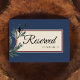 This Pine Blue Winter wedding reserved sign combines a classy, formal dusty blue framed border with elegant, evergreen pine tree boughs for a classic, yet rustic look. The botanical greenery foliage with calligraphy type over a beige background creates a nature focused vibe for a Christmas or forest destination marriage celebration.