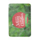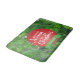 This Christmas bath mat features a red Christmas tree bauble and the script text that reads: Have yourself a Merry little Christmas. A lime green banner near the bottom offers customizable text for you to personalize with a name. The background is a beautiful vivid green photo of branches of pine needles.