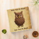 A cute owl made of pine cone scales. There are two places for you to customize this product by adding your own text on the front, and another on the spine.