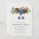 Capture the essence of nature's beauty with the intricate pine cone and vibrant red berries illustrations that adorn this invitation. The rich, earthy tones combined with the festive red accents evoke a sense of coziness and romance, setting the tone for a heartwarming celebration.