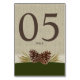 Pine cones and burlap printed table number card to compliment our woodland green wedding pine cone invitation set, can be personalized and ordered individually. All parts of this card are printed. There are no burlap or pine cones attached.
