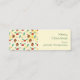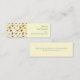 Mini business cards with a cute pattern featuring pine cones and holly on a yellow watercolor background with little white circles scattered around. Christmas greeting on the back.