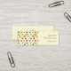 Mini business cards with a cute pattern featuring pine cones and holly on a yellow watercolor background with little white circles scattered around.