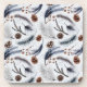 Pine Cones & Pine Needles Watercolor Pattern Beverage Coaster