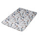 A bath mat with a beautiful pattern. Pine cones, feathers, pine needles and berry sprigs. Rustic watercolor design.