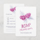 RSVP features two pine cones / confer cones with needle foliage sketched in pencil and colored in plum purple and navy blue hues on a crisp white background. Great for co-coordinating with plum and navy weddings or for nature themed winter country rustic themed wedding. Part of the pine cone drawing wedding set. Edit this RSVP invitation with your names, dates and wording. Unique drawing and design by Sarah Trett for www.mylittleedenweddings.com on zazzle.