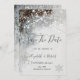Winter wonderland, pine cones and snowflakes save the date. Beautifully save the date that can be customized with your name. Select the "customize" button to change the font style, color, and size.