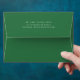 Pine Forest Green colored envelopes that match the Pine Woods Watercolor Wedding Collection. Please check the La Bella Rue shop for many other colors. Add your return address to the back flap. Address prints in white. If you need a certain color or have a questions please email me paula@labellarue.com BEFORE YOU CUSTOMIZE or place an order.
