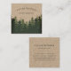 Unique square business cards for adventure guides, tour guides or any outdoor type occupation feature a forest of pine tree silhouettes in rich shades of forest green, with your name and business name, title or occupation above. Add your full contact details to the back in off-black lettering. Real brown kraft paper gives these business cards a unique and authentic rustic country look.