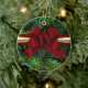 Pine/Gold/Red Bow Ceramic Ornament