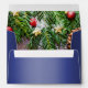 Add a touch of festive elegance to your holiday mail with our Pine Needles Blue Christmas Envelope. Featuring a stunning metallic blue gradient exterior, this envelope radiates sophistication and seasonal charm. Open it to reveal a beautifully detailed interior design of lush green pine needles, a rustic pine cone, shimmering red baubles, gold stars and a dusting of fresh snow. Perfect for enclosing Christmas cards or party invitations, it transforms every message into a luxurious and memorable festive greeting.