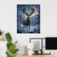 A majestic pine stag stands proudly in a snowlit mountain forest where wilderness strength meets evergreen beauty. Realistic stag anatomy blends with pine textures, fir needles, cones, bark details, and branching antlers transformed into living evergreens. Frosted trees, drifting snow, distant peaks, blue twilight tones, and a warm horizon glow create a peaceful cinematic atmosphere. This premium fantasy wildlife design adds elegance and seasonal charm to lodges, cabins, holiday interiors, or statement gift collections. Perfect for deer lovers, winter decor fans, and rustic luxury spaces.