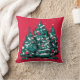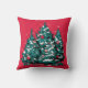 Pine tree and christmas ornaments red background throw pillow