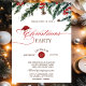 An elegant holiday party invitation featuring a Christmas pine tree branches with berries and a Santa hat on a white background. These beautiful Christmas invitations are perfect for Christmas dinner party invitations, holiday gift exchange invitations, Christmas fundraisers, holiday ball invitations, and other events held during the month of December. Just use the template fields to add your own event information.