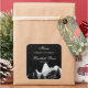 This elegant label is perfect for your candle making, food jar label, or other DIY project. The background is black. In the foreground there is an illustration of mountains and pine trees in shades of white and grey. Your text goes towards in the top.