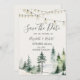 Watercolor woodland with string lights. Beautifully save the date that can be customized with your name. Select the "customize" button to change the font style, color, and size.