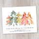 Elegant moving announcement with a watercolor forest of abstract pine trees in muted green, red, gold and orange. Personalize the "Our New Neck of the Woods" text, your family name and your new address. On the reverse side, personalize your announcement in more detail and include telephone numbers and email addresses if desired.