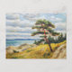 Pine tree on sanddune on baltic sea. oil painting postcard